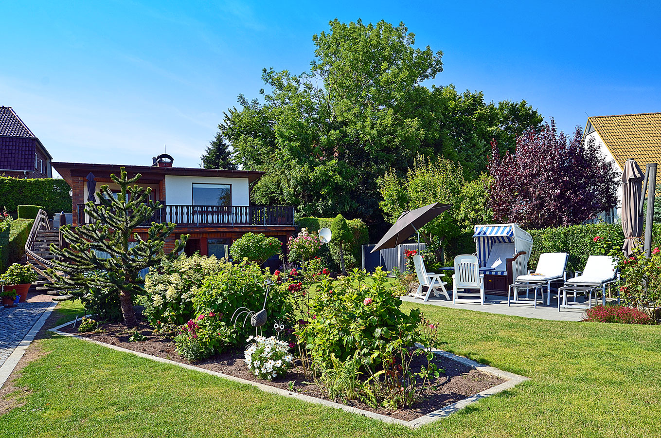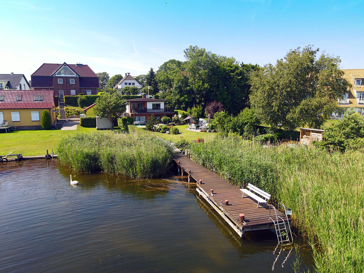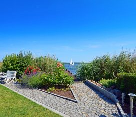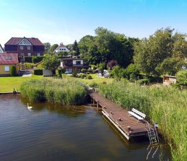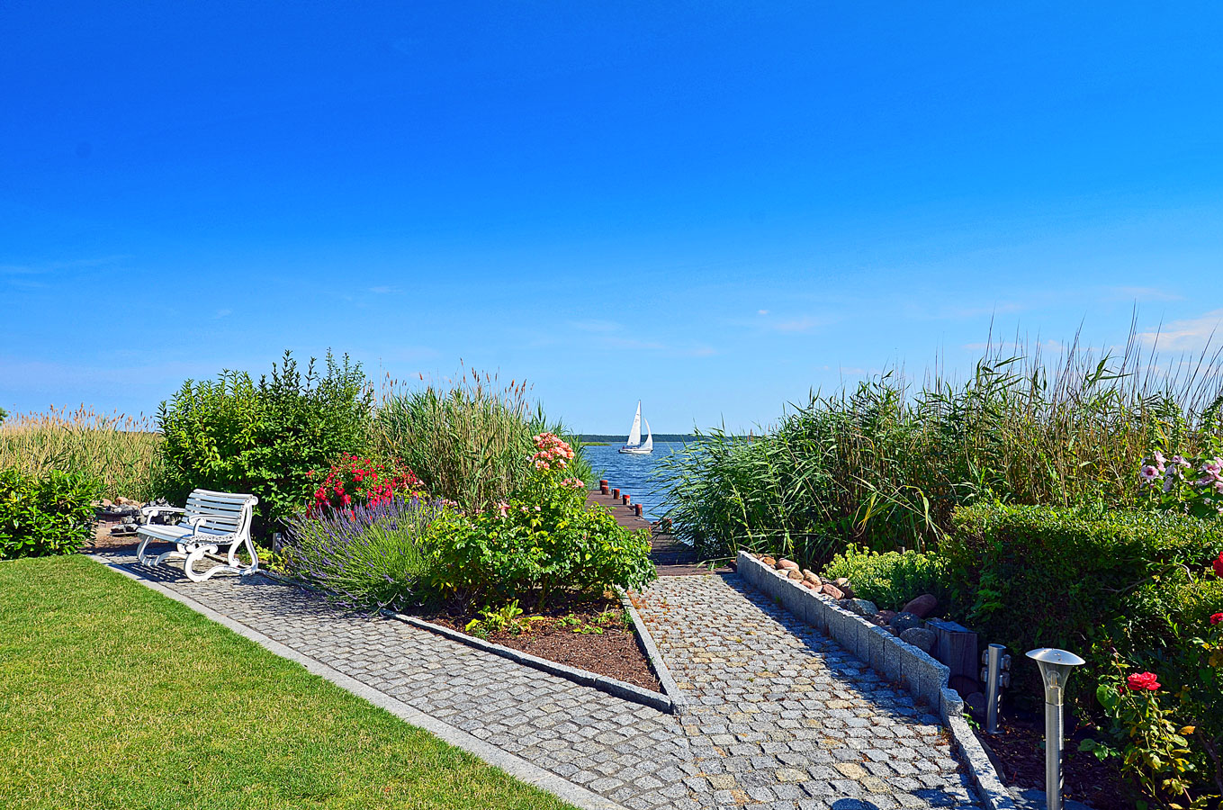 Mitten im Gartenparadies befindet sich auf ca. 160 qm das mit Hecke umzäuntes Ferienhaus (zum Wasser offen) mit Blick auf’s Wasser und eigenem Bootssteg, ideal zum Surfen & Kiten, Rudern & Angeln oder zum Kanu/ Kajak fahren.