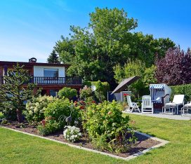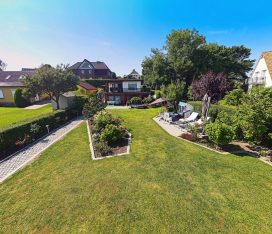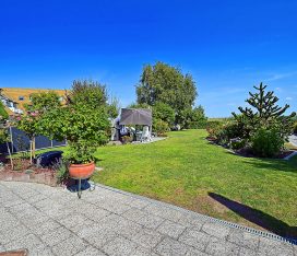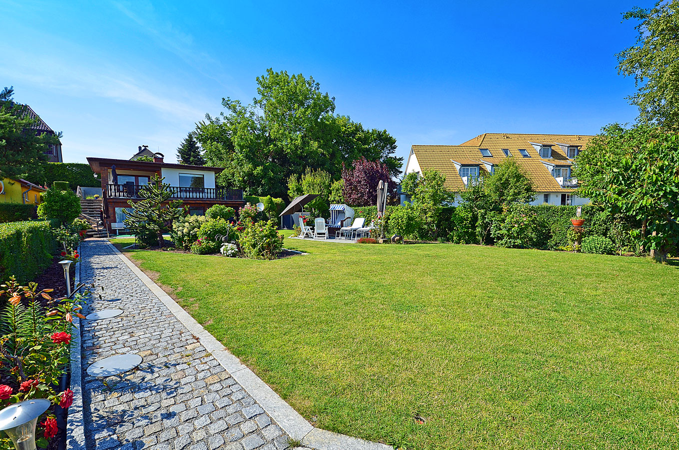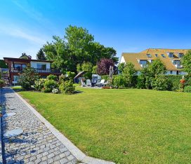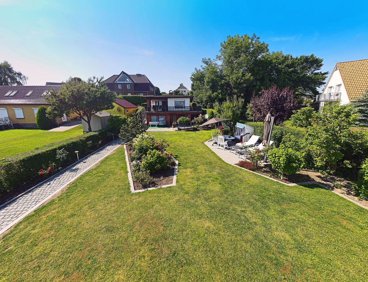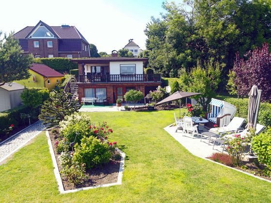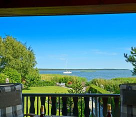 Mitten im Gartenparadies befindet sich auf ca. 160 qm das mit Hecke umzäuntes Ferienhaus (zum Wasser offen) mit Blick auf’s Wasser und eigenem Bootssteg, ideal zum Surfen & Kiten, Rudern & Angeln oder zum Kanu/ Kajak fahren.