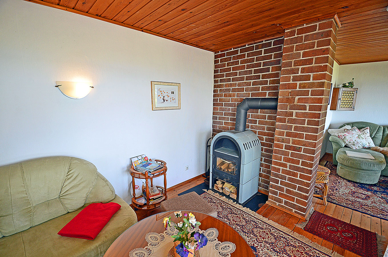 Sollte das Wetter mal nicht so schön sein, gibt es im Erdgeschoss und im Obergeschoss jeweils einen Kamin (keine Zentral- bzw. Elektroheizung vorhanden). Das lädt zum gemeinsamen Spielen, Fernsehen oder entspannt ein Buch lesen ein.