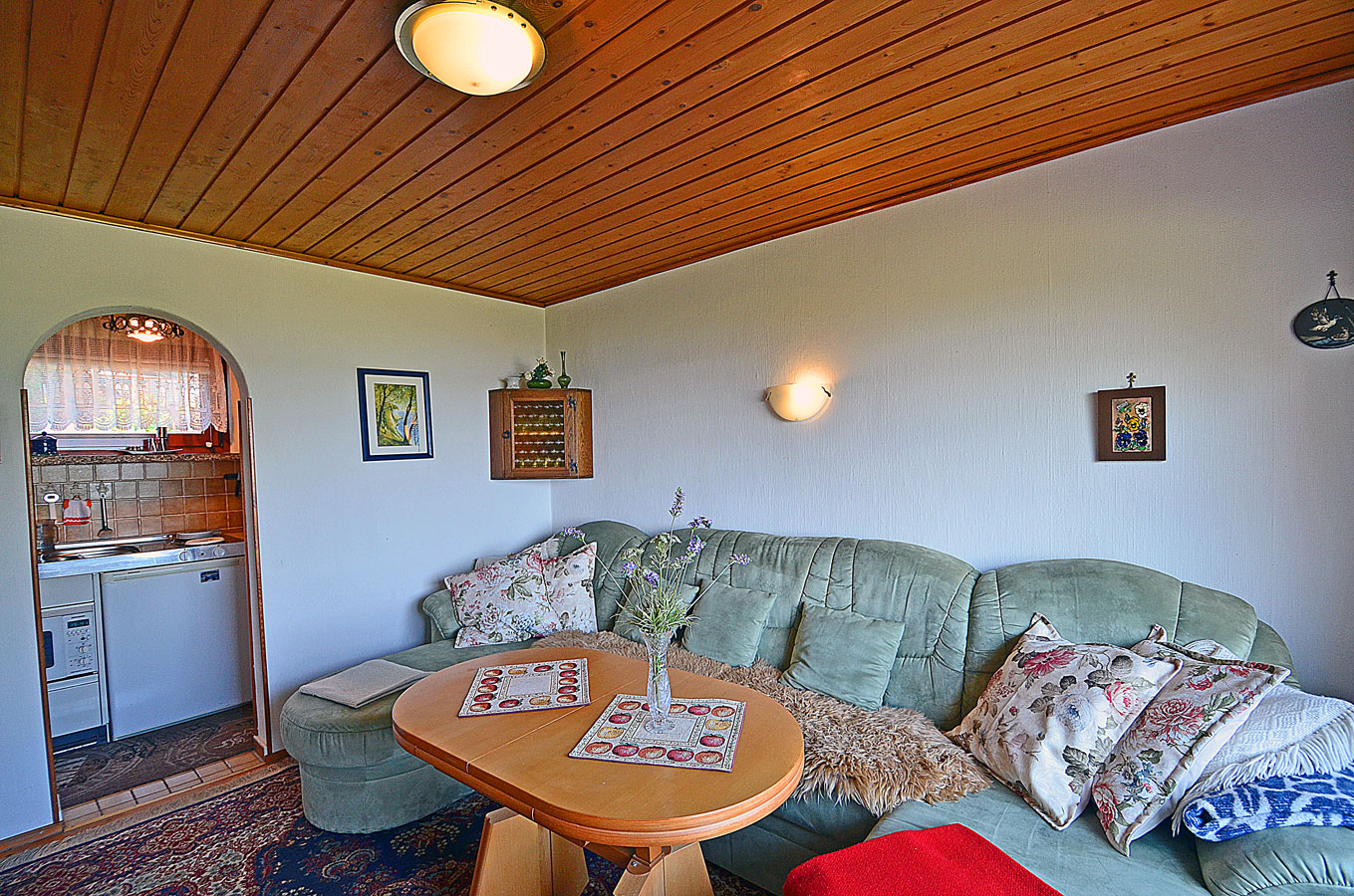 gemütliches Kaminzimmer (inkl. Kaminholz) mit Boddenblick, Eckcouch mit Fusshocker, separates Wohnzimmer mit Relaxcouch und traumhaften Wasserblick, TV/ Sat (Flatscreen), Radio, Gesellschaftsspiele und Bücher für gemütliche Abende, Küche mit 2-Plattenherd, Backofen, Kühlschrank mit kleinem Gefrierfach, Kaffeeautomat, Wasserkocher, Toaster