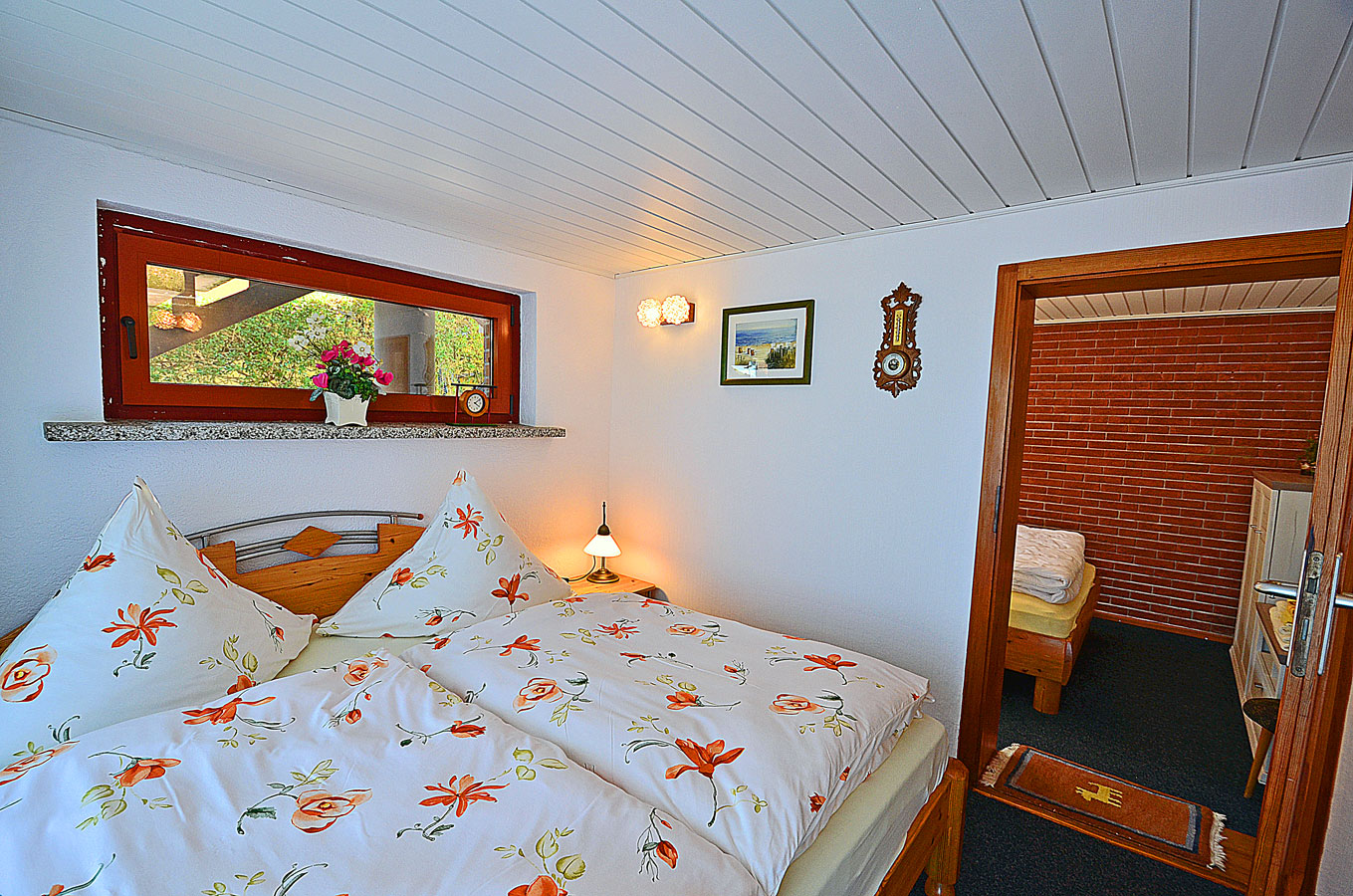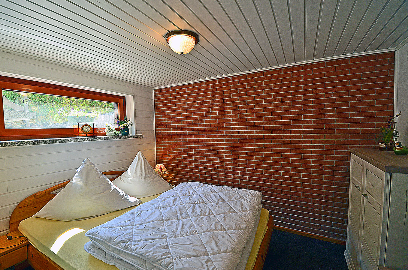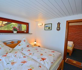 Erdgeschoss: 1. Schlafzimmer mit Doppelbett (Matratze durchgängig 180 x 200), Kommode und Wandgarderobe, 2. Schlafzimmer mit Doppelbett (Matratze durchgängig 140 x 200), separater Kaminraum mit Staubsauger, Wäscheständer