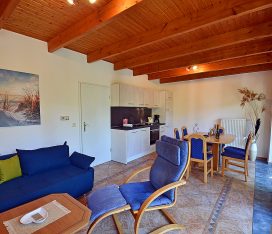 gemütliches Wohnzimmer mit Essecke und Couch mit Schlaffunktion, TV/Sat (Flatscreen/Smart-TV), Radio/ CD, kostenloses WLAN, Bücher für gemütliche Lesestunden, komplett ausgestattete Küche mit 4 Plattenherd (Induktion) und Backofen, Geschirrspüler, Kühlschrank mit großem Gefrierfach, Filterkaffeemaschine und diversen Elektrogeräten
