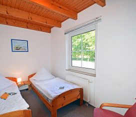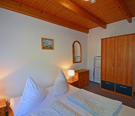 1. Schlafzimmer mit Doppelbett (2 Matratzen je 80 x 200) und Kleiderschrank, 2. Schlafzimmer mit zwei Einzelbetten (je 90 x 200), Bad mit Dusche und WC