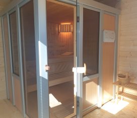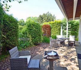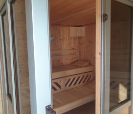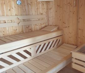 Außenbereich: Terrasse mit 4 Gartenstühlen, Grillmöglichkeit besteht (Grill vorhanden), die Außensauna mit 2 Bänken für 4-6 Personen ist wettergeschützt in einer kleinen Holzhütte und grenzt an die Terrasse, eigener PKW-Stellplatz vor dem Objekt, Haustiere nach Absprache