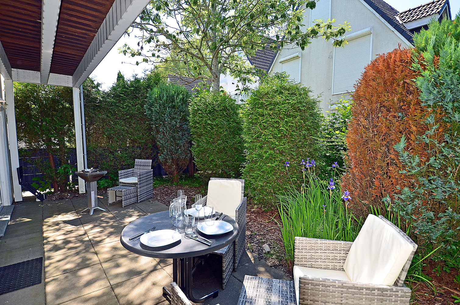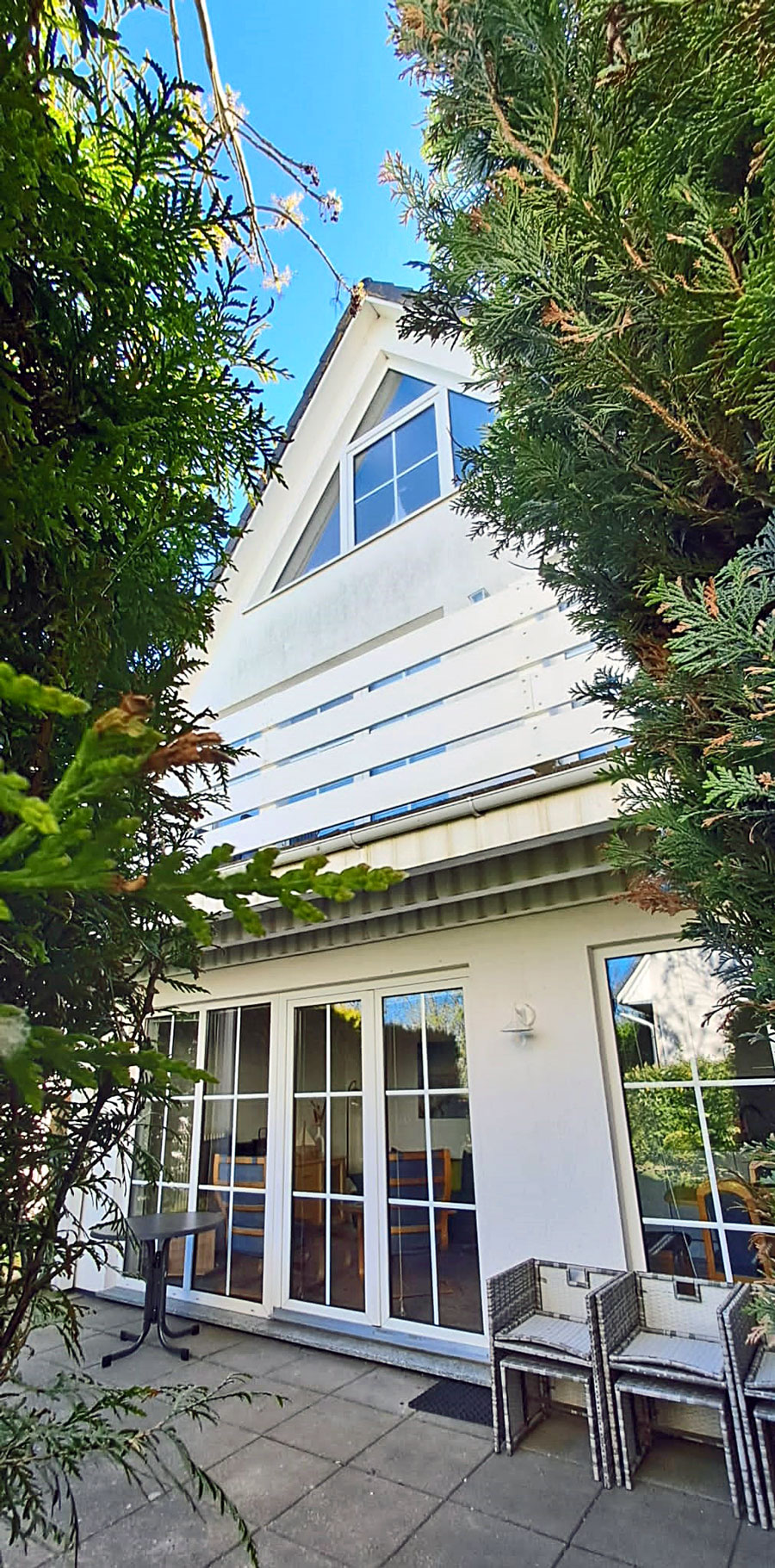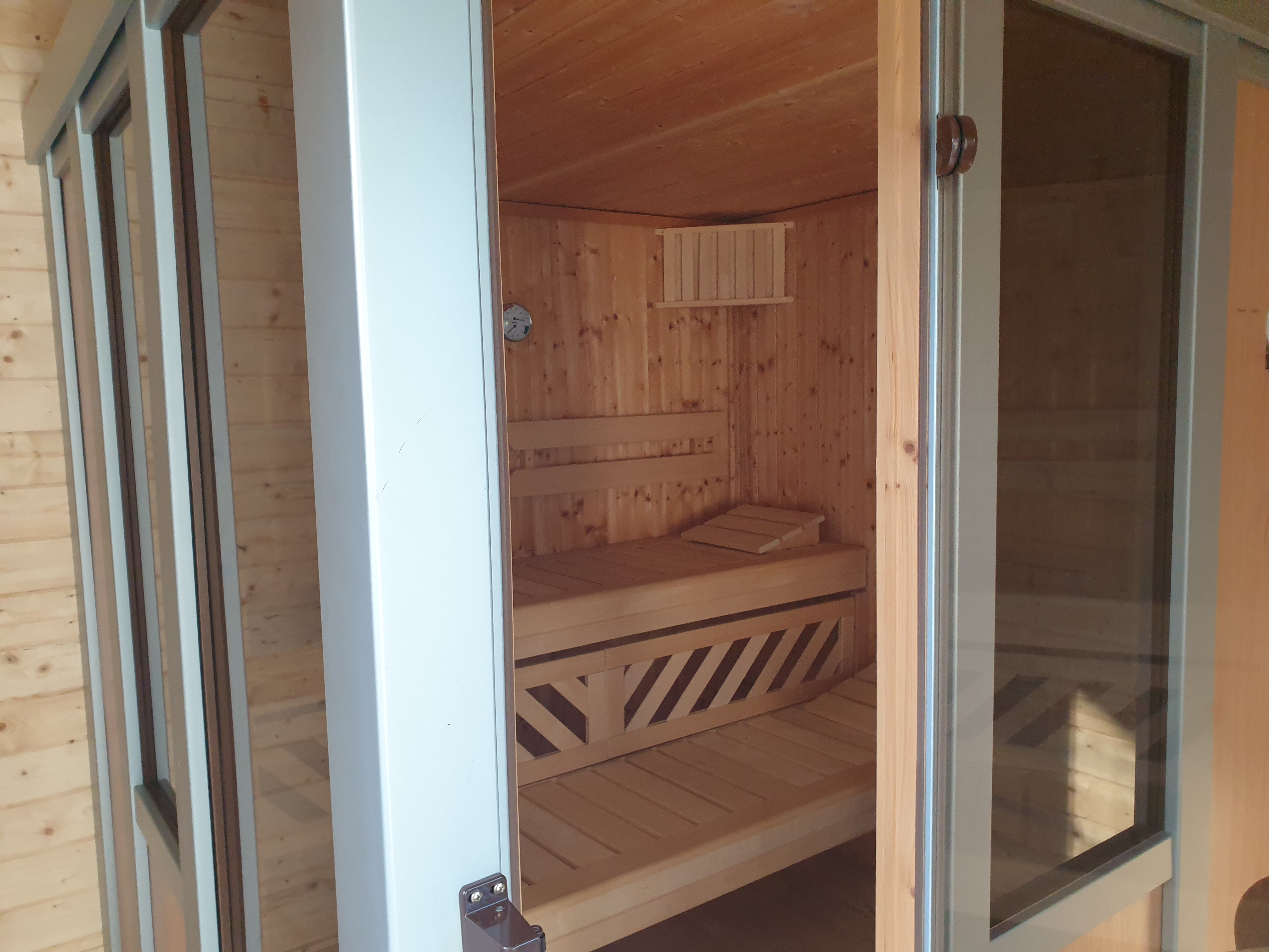 Außenbereich: Terrasse mit 4 Gartenstühlen, Grillmöglichkeit besteht (Grill vorhanden), die Außensauna mit 2 Bänken für 4-6 Personen ist wettergeschützt in einer kleinen Holzhütte und grenzt an die Terrasse, eigener PKW-Stellplatz vor dem Objekt, Haustiere nach Absprache