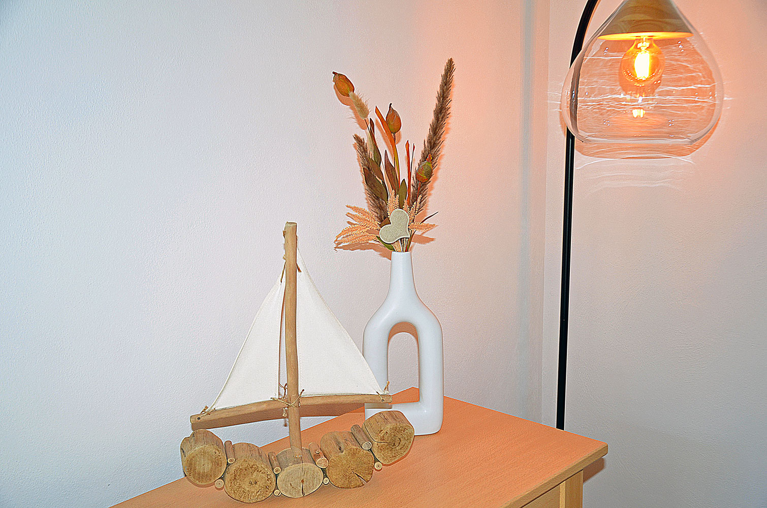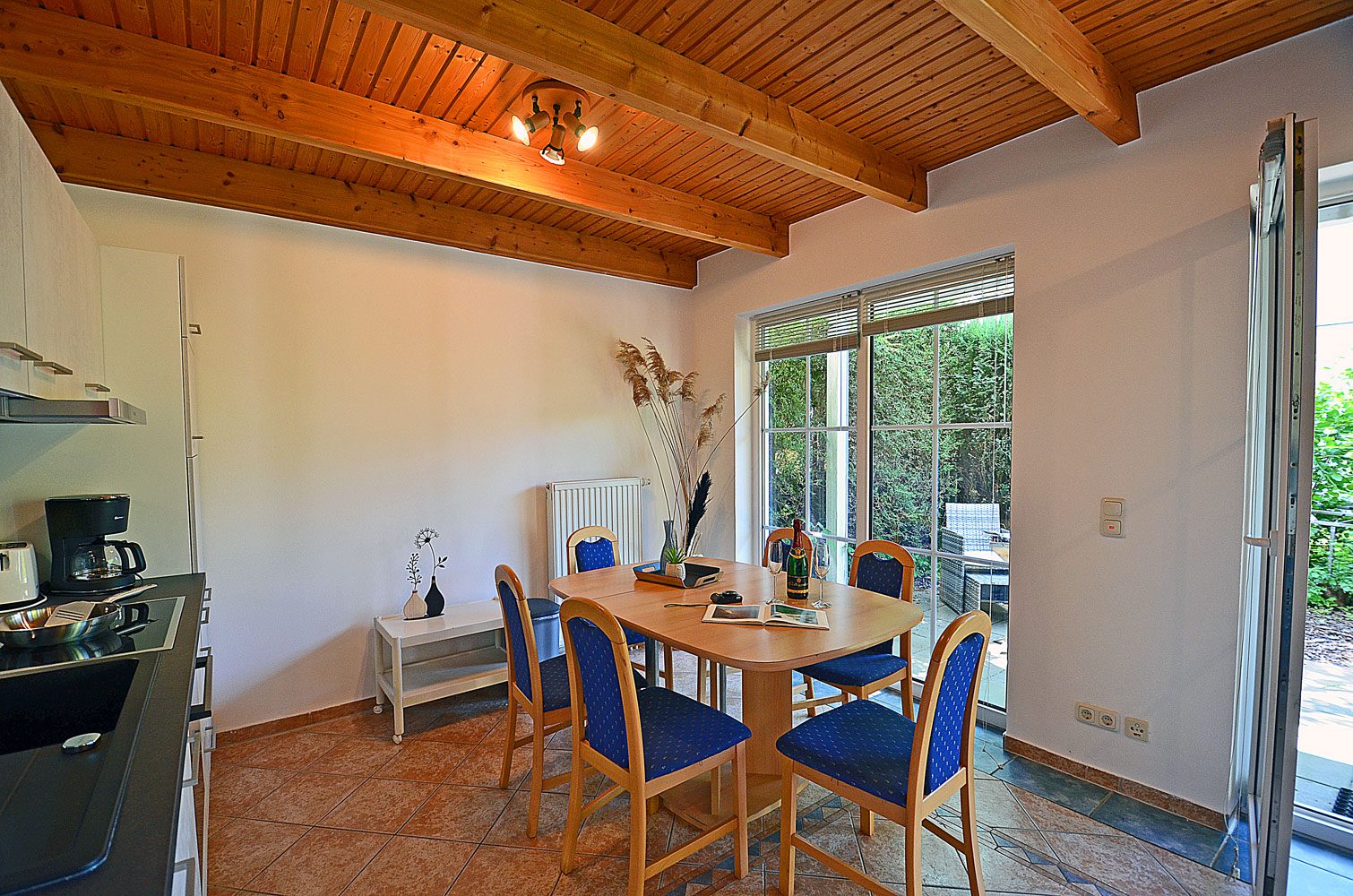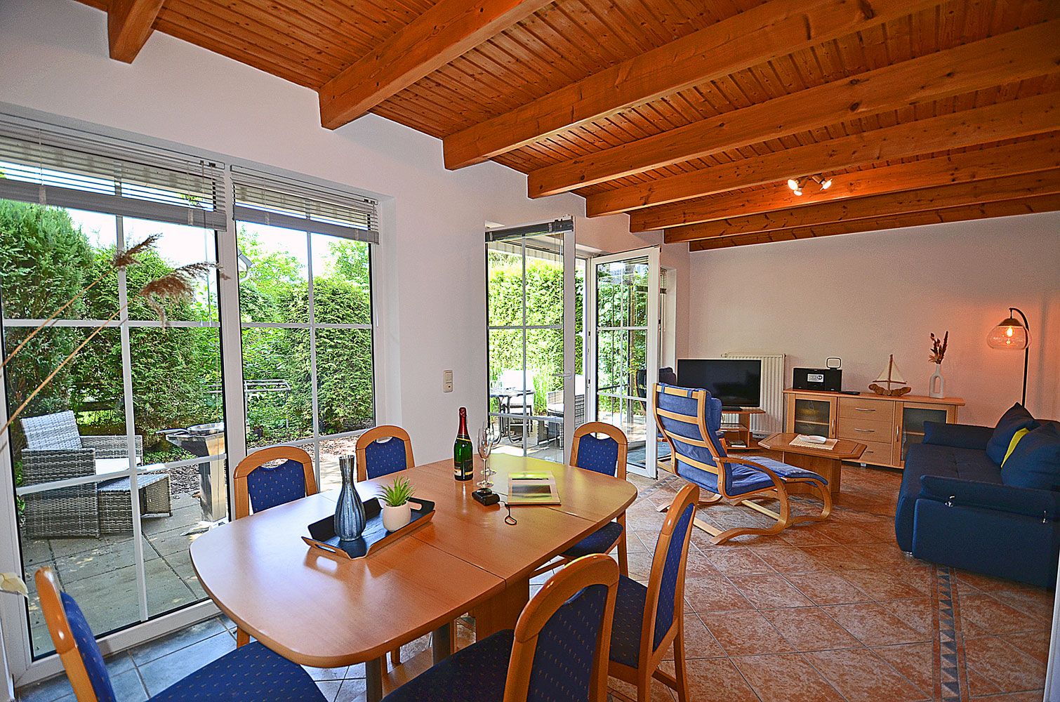 gemütliches Wohnzimmer mit Essecke und Couch mit Schlaffunktion, TV/Sat (Flatscreen/Smart-TV), Radio/ CD, kostenloses WLAN, Bücher für gemütliche Lesestunden, komplett ausgestattete Küche mit 4 Plattenherd (Induktion) und Backofen, Geschirrspüler, Kühlschrank mit großem Gefrierfach, Filterkaffeemaschine und diversen Elektrogeräten