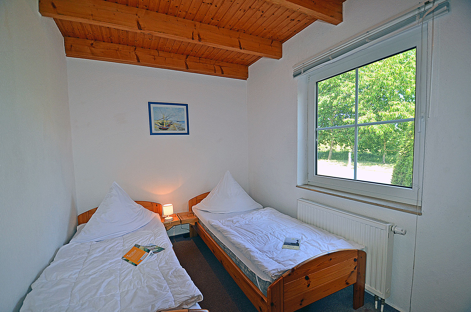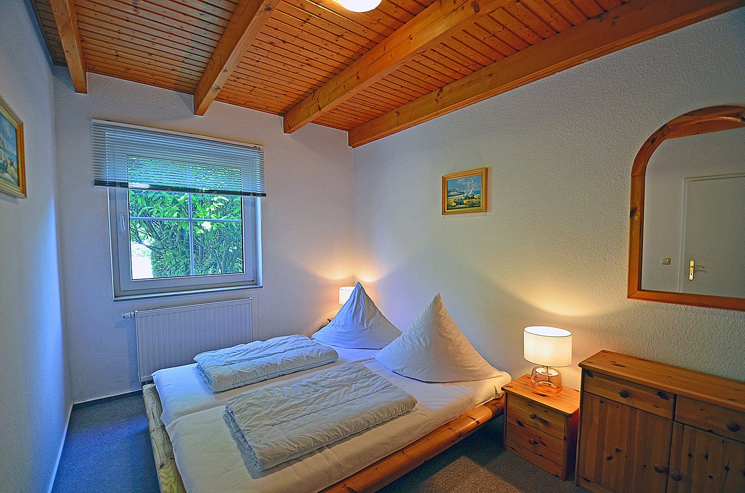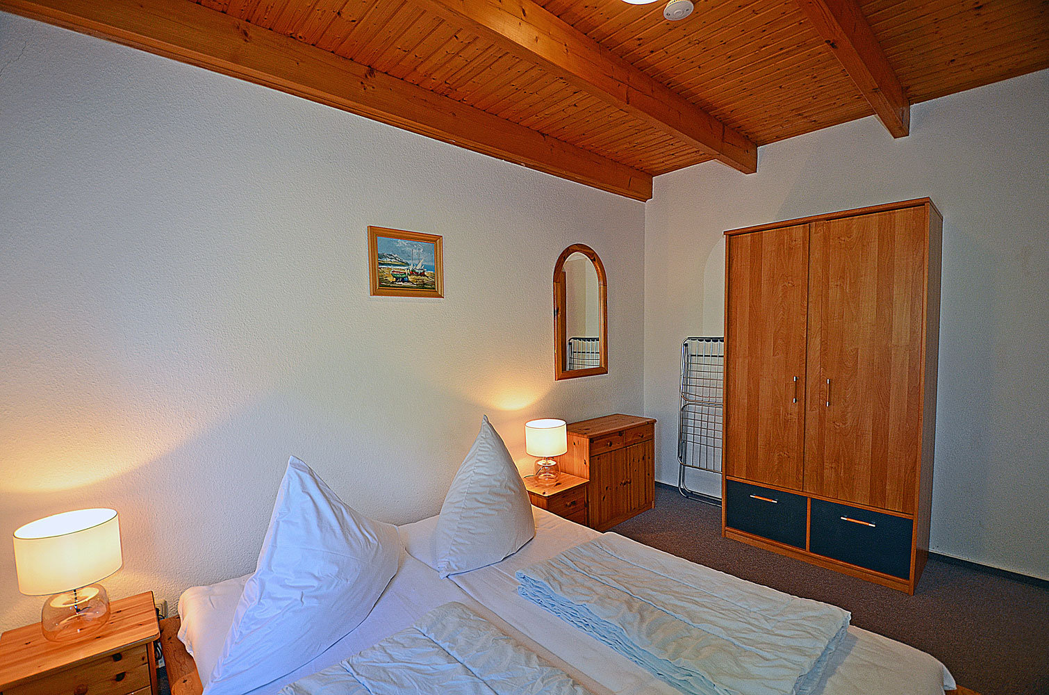 1. Schlafzimmer mit Doppelbett (2 Matratzen je 80 x 200) und Kleiderschrank, 2. Schlafzimmer mit zwei Einzelbetten (je 90 x 200), Bad mit Dusche und WC