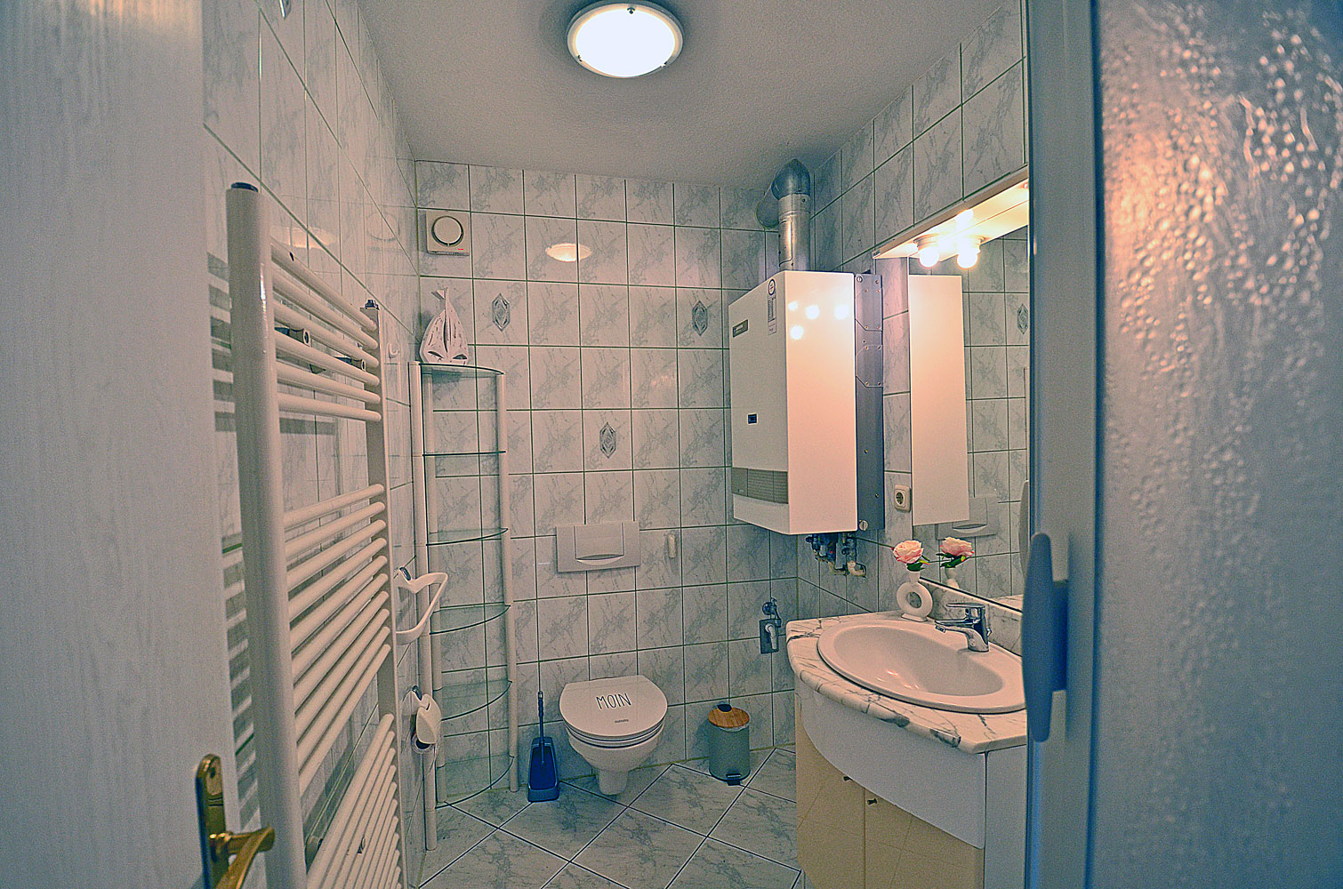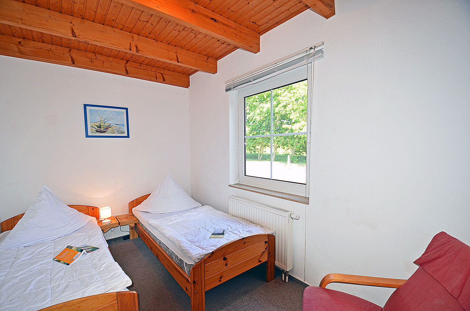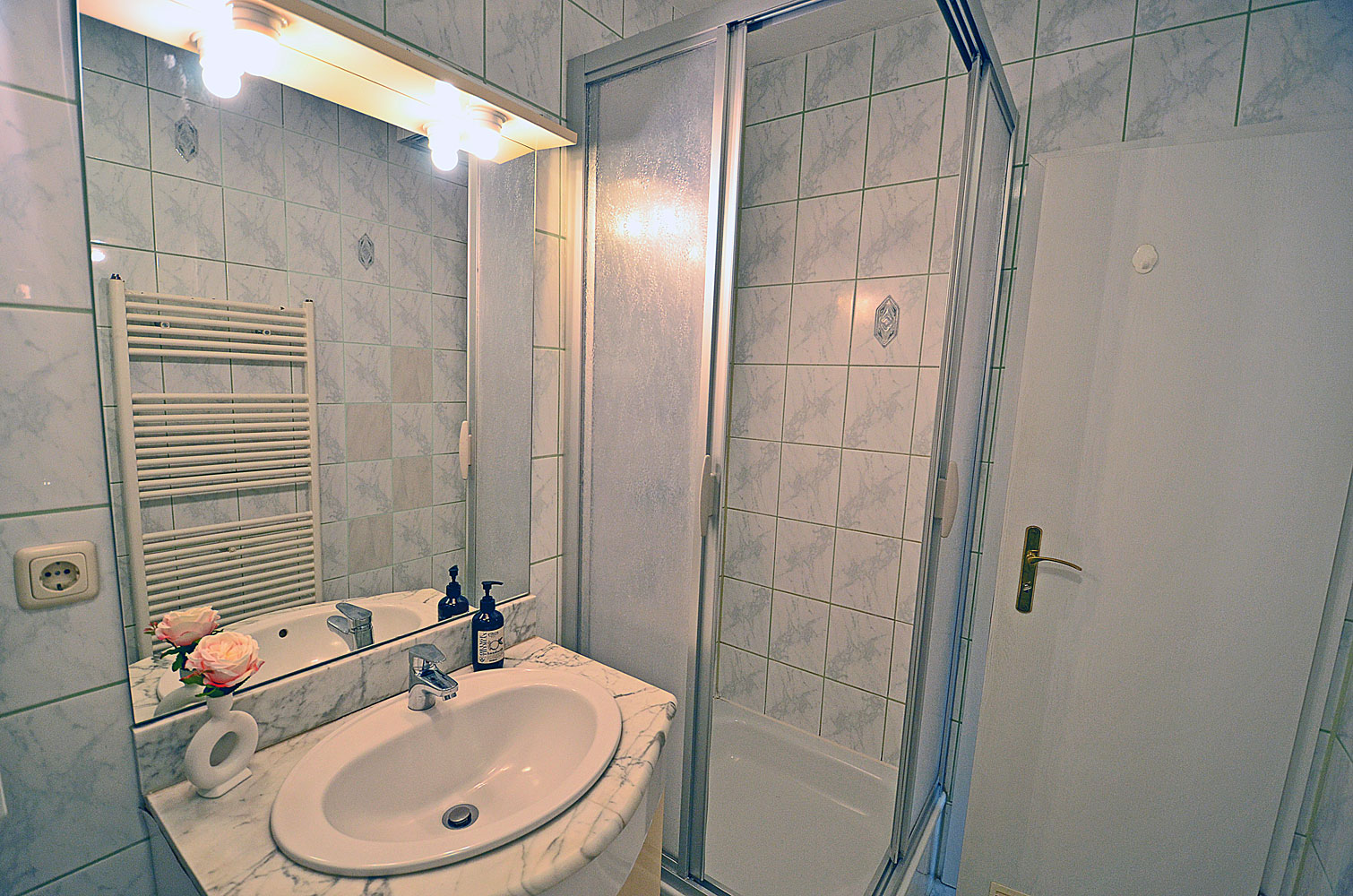 1. Schlafzimmer mit Doppelbett (2 Matratzen je 80 x 200) und Kleiderschrank, 2. Schlafzimmer mit zwei Einzelbetten (je 90 x 200), Bad mit Dusche und WC