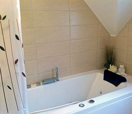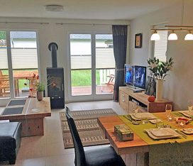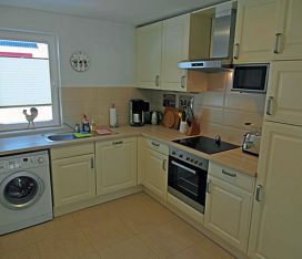 Erdgeschoss: großzügiger Wohn- Essbereich mit Fußbodenheizung und Kamin, gemütliche Couchlandschaft mit Schlaffunktion, TV/Sat (Flatscreen), Blu-ray Player, komplett ausgestattete Einbauküche mit Waschmaschine, 4-Plattenherd (Ceranfeld/Induktion), Backofen, Kühlschrank mit kleinem Gefrierfach, Mikrowelle, Geschirrspüler und diversen Elektrogeräten, 1. Bad mit Infrarotsauna, Dusche und WC,