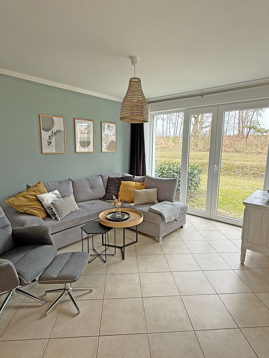 Die Stranddüne ist komfortabel und modern eingerichtet. Alle Räume sind mit Fußbodenheizung ausgestattet. Die Terrasse mit gemütlichen Gartenmöbeln laden zum Verweilen und Entspannen ein. Von der Wohnung aus haben Sie einen direkten Zugang zum feinsandigen Badestrand mit Blick vom Wasser bis nach Kap Arkona. Die „Stranddüne“ ist ein Nichtraucherquartier. Waschmaschine und Trockner stehen im Gemeinschaftsraum gegen Gebühr (3-5 Euro) zur Verfügung. Abschließbare Fahrradabstellmöglichkeit ist im Keller vorhanden. Für Klein und Groß gibt es diverse Sport und Strandspiele. Und für die gemütlichen Abende Bücher und Gesellschaftsspiele. Ca. 2 km entfernt in Altenkirchen finden Sie einen Netto, das Kaufhaus „Stolz“, Edeka und einen Getränkemarkt. Restaurants und Radverleih sind in der Nähe. Vom ca. 2 km entfernten Hafen in Breege sind Ausflugsmöglichkeiten per Schiff zur Insel Hiddensee und zu den Störtebeker-Festspielen möglich. Es gibt zwei PKW-Stellplätze direkt am Objekt. Optimale Rad- und Wandermöglichkeiten um die Insel zu erkunden, runden das Angebot ab. Bei uns sind Hunde willkommen (Gebühr Euro 5,-Euro pro Nacht/ pro Haustier).