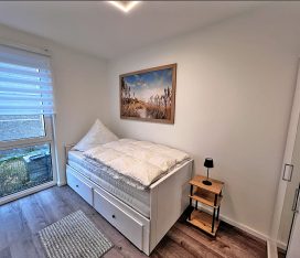 2. Schlafzimmer mit Tandembett (90 x 200 für Kinder und Jugendliche geeignet) und Kleiderschrank