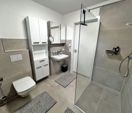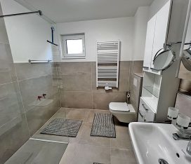 1. Bad mit großer ebenerdiger Dusche, WC mit Waschtisch, Kosmetikspiegel
