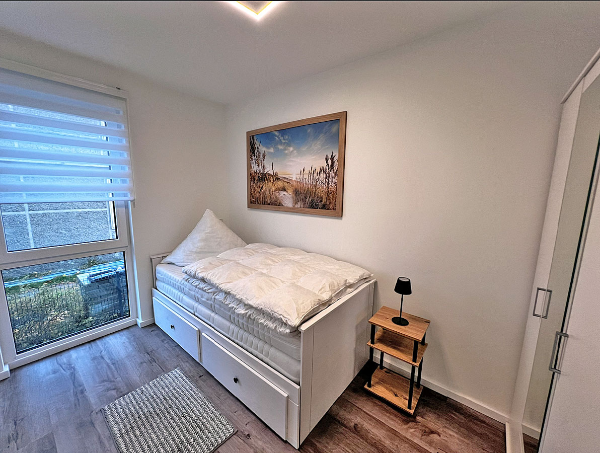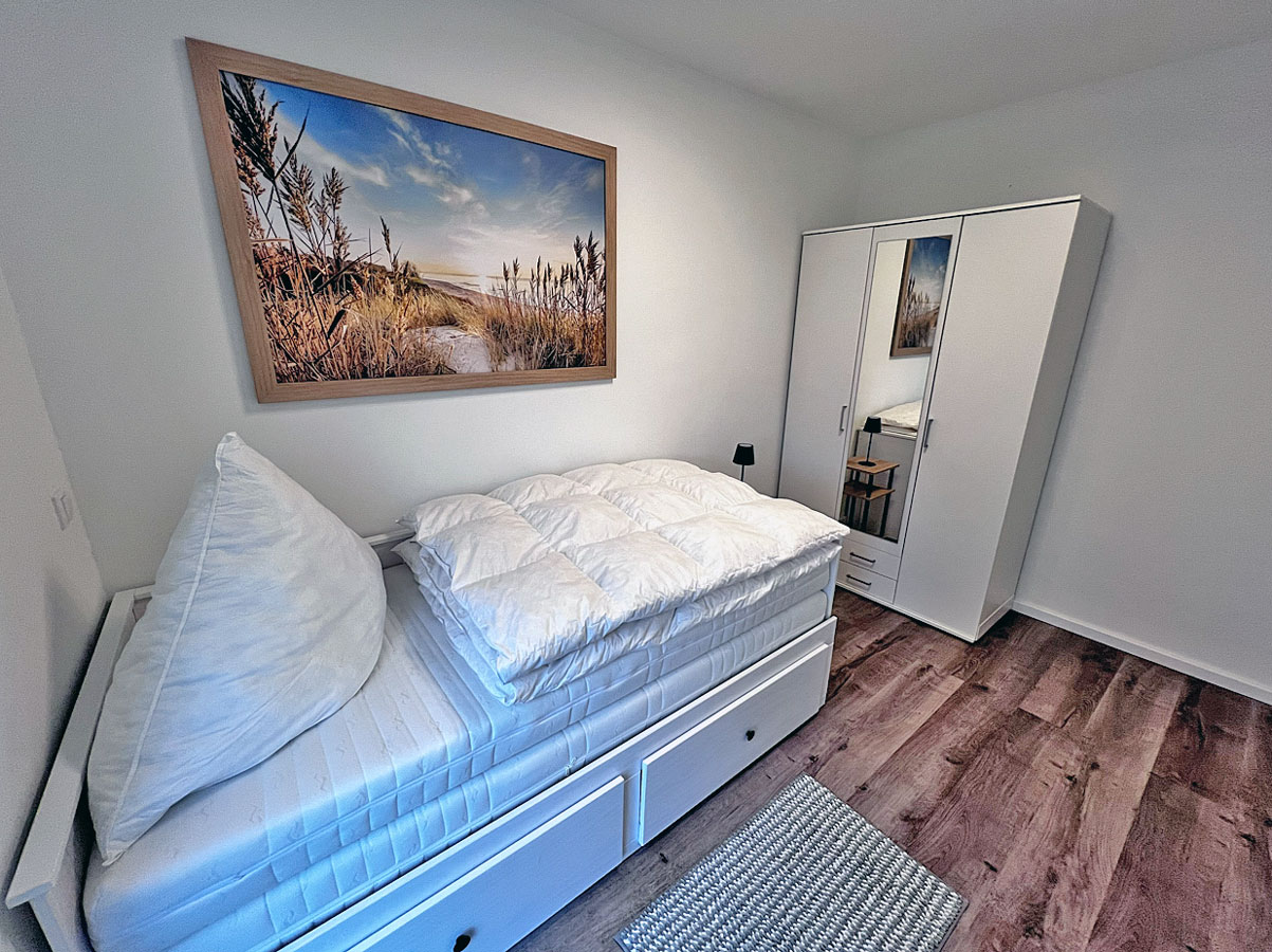 2. Schlafzimmer mit Tandembett (90 x 200 für Kinder und Jugendliche geeignet) und Kleiderschrank